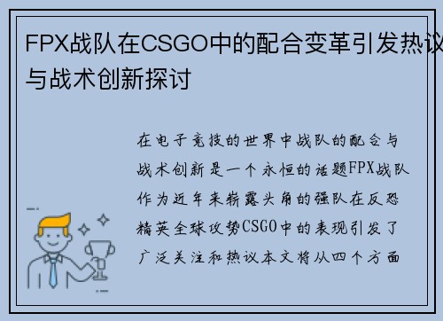 本文将对北京足球队的反击战术进行深入分析,探讨其在比赛中取得的成功与失败。首先,我们将分析目前球队反击战术的基本框架和理念,接着讨论其在具体比赛中的应用效果,并结合一些典型案例来说明战术的得失。然后,我们会从球队人员配置、对手应对策略以及赛季整体表现等多个角度进行全面评估,最后总结出反击战术在实际运用中的优势与不足,以期为未来的发展提供有益的参考。 1、反击战术的基本理念 北京足球队在反击战术上...